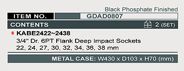 Bộ đầu tuýp lục giác dài đen 3/4 inch 8 món toptul GDAD0807