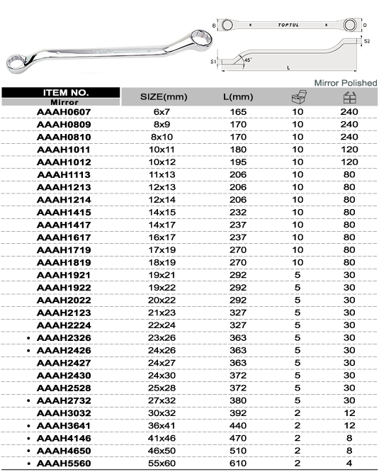 Cờ lê 2 đầu vòng 45 độ 6x7mm