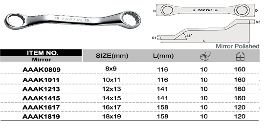 Cờ lê 2 đầu vòng 45° ngắn 10x11mm TOPTUL AAAK1011