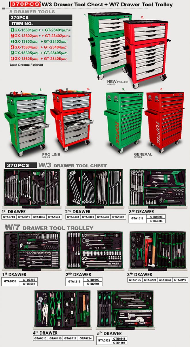 Tủ đồ nghề 7 ngăn 370 chi tiết toptul GX-13601+GT-23401