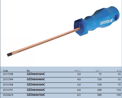 Tua vít dẹt làm bằng nguyên liệu đồng cứng đặc biệt chống phát tia lửa điện