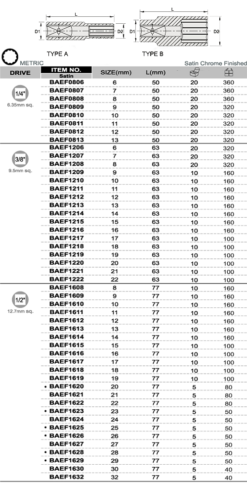 Model: BAEF0806 Kích thước: Dr. x 6mm, L = 50mm Series BAEF: