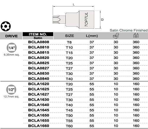 Vít sao lỗ 1/4" Dr. xT8 L=37mm